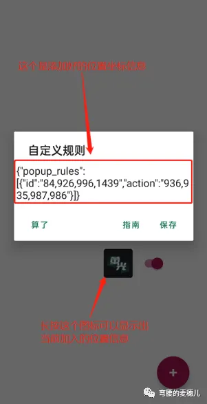 点击右下角的“+”,在弹出的窗口中输入我们之前通过Auto.js获取到的位置坐标信息