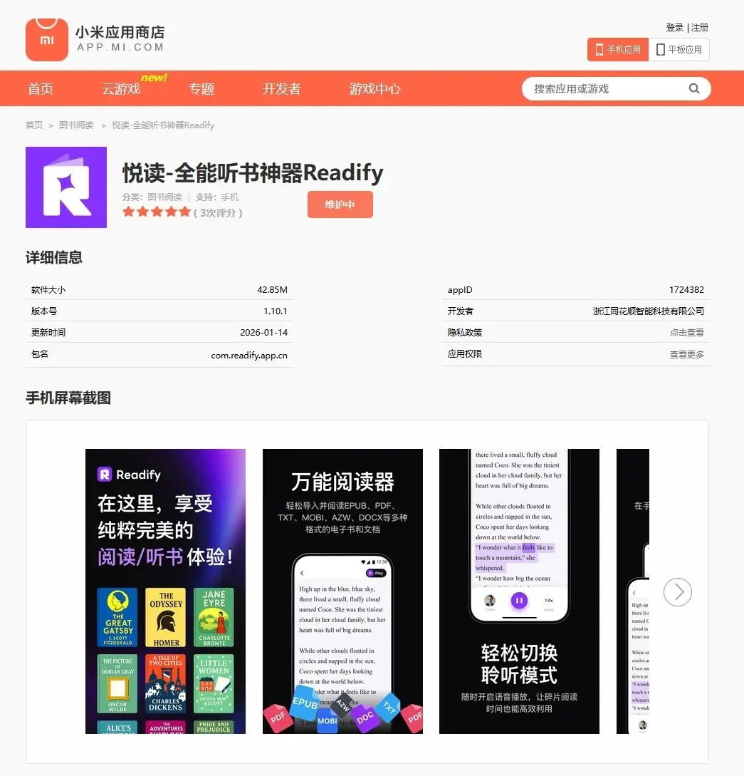 ① 从各大应用商店/官网下载对应平台的“悦读(Readify)”app,又或者直接打开其网页版。