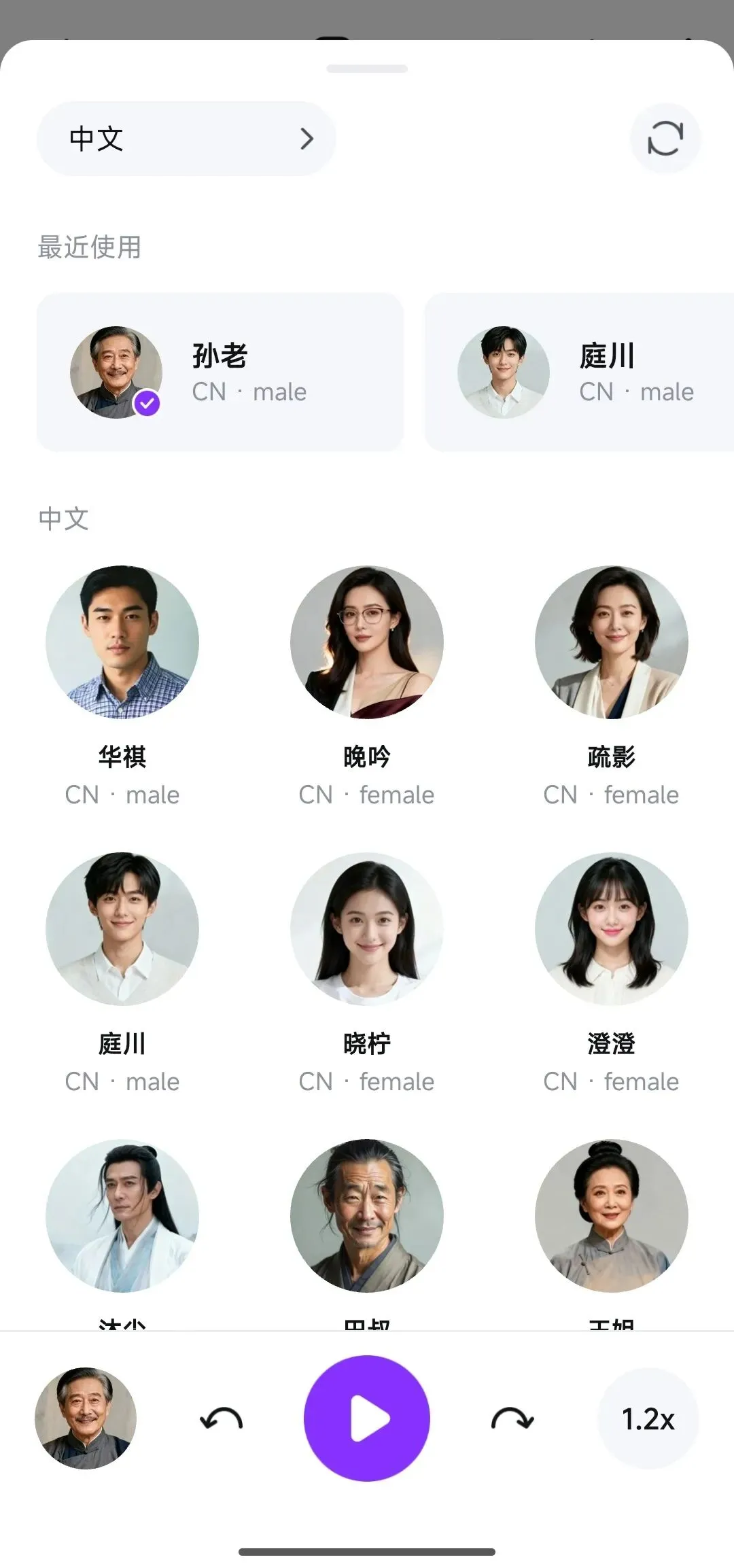 手机端:直接点击左下角的“人物头像”,就能选择音色;