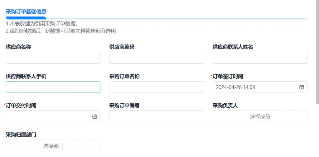 仓库管理部门通过系统导入采购订单,去熟悉所有采购计划。同时,供应商送货信息也同步进入系统,包括供应商名称、送货单号、送货时间等关键信息。这样,仓库管理人员在接收来料前就能对来料的基本信息有全面的了解。