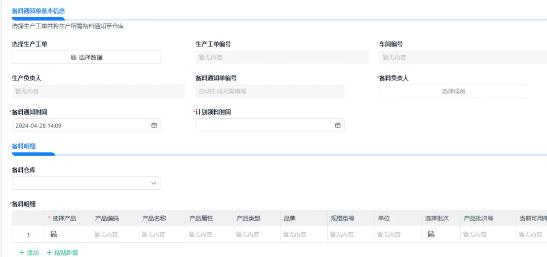 生产员在接收到生产工单后,根据生产计划和实际生产进度,填写备料通知单。备料通知单详细列出了所需物料的名称、规格、数量等信息,并注明使用时间和生产线位置。