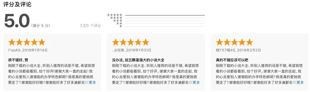 软件在iOS应用商店当前以满分的评分排名靠前,管家看了下整体的评价都比较中肯,无论是软件界面排版设计,还是读书视觉体验以及用户操作都非常人性化,加上这款读书软件,管家现在iOS手机一共保存了三款优质的读书软件了,一款是博看书苑,一款是百度阅读PRO,这些软件基本可以保障我们找到雅俗共赏的书籍了。