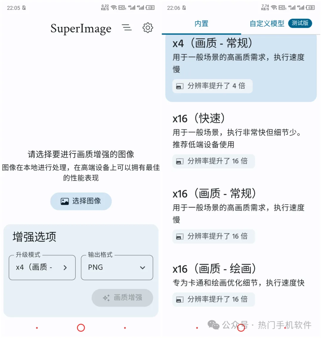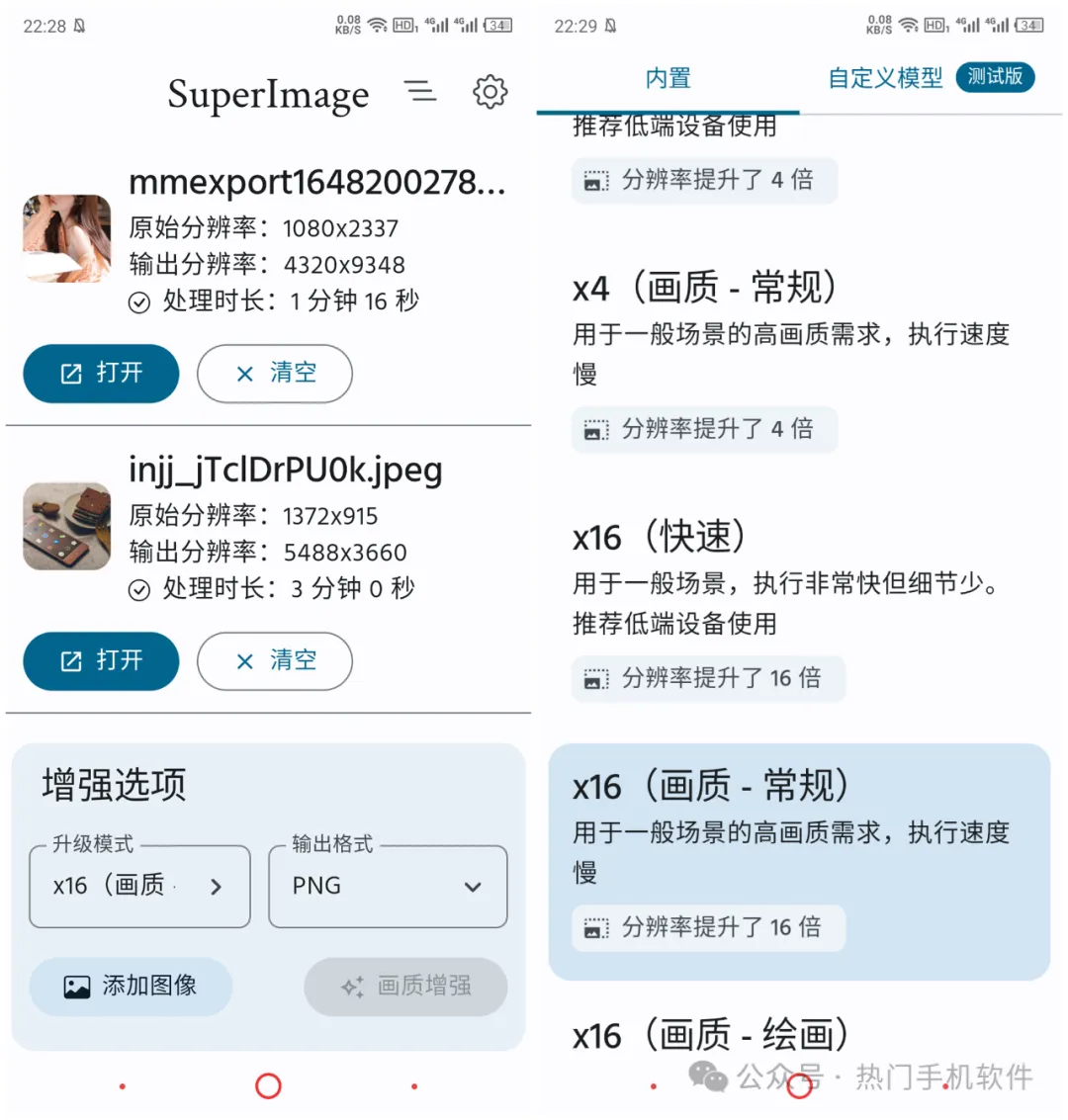 它支持画质分辨率提升4倍和16倍,比如你需要提升一张图片16倍分辨率,可以选择×16(快速) 和 ×16(画质-常规)