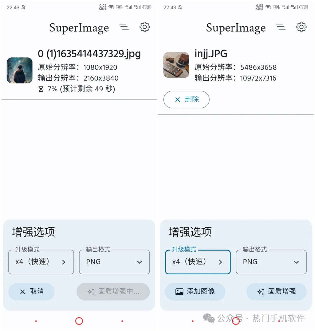 这款画质修复软件界面简洁干净,使用也异常简单,我们使用时,只需添加好图片,然后在“增强选项”,设置好你需要提升的画质清晰度及分辨率。接下来就交给这款图片处理神器就行啦。