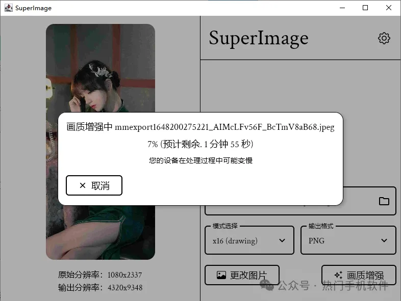 ×16(画质-常规),用此选项,修复出来的图片就基本很完美了,细节处理都很到位,但处理速度会稍慢。