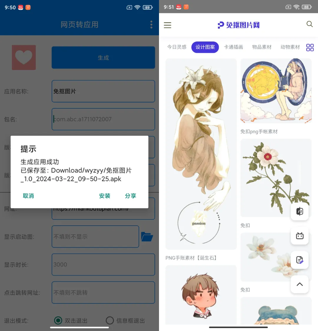 设置好之后直接点击“生成”就可以得到安装包了,可以随意分享,也可以一键安装,开打之后APP整体就和正常的软件没有任何区别,使用也很流畅。