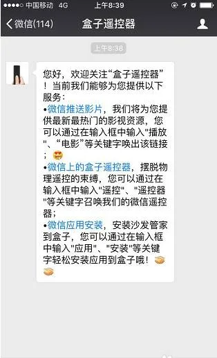 微信关注”盒子遥控器”,关注后,跳转页面如下,点击屏幕中间的“微信安装”和屏幕右下角的“应用” – “应用安装”,均可进入沙发管家安装界面。