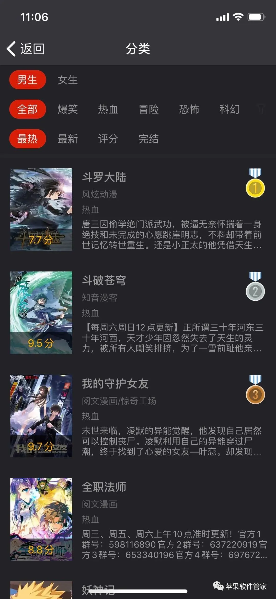 趁还未下架,速度下载这款苹果阅读软件! 苹果软件管家 每个果粉都应该关注的一个公众号 安卓手机的阅读软件真心不少 而且基本都是内置的书源都非常丰富 往期管家给大家分享过 笔趣阁这款小说漫画阅读软件 今天再给果粉们分享一款 无广告,无内购的 小说漫画书籍阅读APP 这款软件叫“旧版看书” 目前软件在苹果应用商店可以下载 无需担心后期软件失效的问题 简约清爽的首页 点击左上角可以切换男生和女生 点击导航可以切换漫画和小说 小说和漫画页面基本相似 软件漫画分类多 你可以直接搜索自己想看的漫画 也可以查看每日更新 无论是大众的还是小众的都有 重点是所有的漫画都是免费的 绝对是漫画爱好者的福利 小说分类也很多 大家可以可以了解分类下的书籍资源数量 也可以查看周榜,月榜和总榜 配合苹果手机的深色模式 这阅读环境是不是很舒服呢 反正我是觉得苹果每一次更新都很棒 点击任意一部小说或者漫画 你可以放在书架也可以直接阅读 双指长按手机屏幕即可进入功能设置 点击目录可以查看漫画或小说的目录 点击滚屏可以进行滚屏阅读 如果书籍不全还可以点击换源观看 点击右下角的设置 你可以设置字体的大小 翻页的模式以及阅读界面的亮暗程度 点击朗读 你可以直接选择朗读的声音 目前支持4种朗读音选择 你也可以根据自己的需求设置朗读的速度 比如你只想听60分钟 设置好时间之后60分钟就自动停止了 漫画阅读界面管家这里就不演示了 除了没有朗读和字体设置 其他基本都一样 这样良心优质的小说漫画APP 难怪在苹果应用商店得到4.9分的评价 这样的软件必须好评 获取软件请关注管家的公众号 【苹果软件管家】 后台回复【旧版看书】即可下载 苹果软件管家平台是什么? 苹果软件管家平台 一个专注分享IOS和MAC软件的平台 平台由3位资深的苹果设备玩家运营 在这个平台里 你不仅仅可以获取很多少有人知的苹果软件 还会认识一大波果粉爱好者。 长按下方二维码即可快速关注 ▼