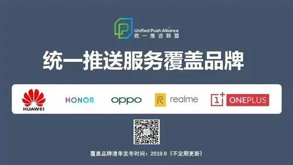 由于Google的推送服务FCM在国内用不了,工信部推出了「安卓统一推送联盟」目前只有覆盖华为、荣耀、OPPO、Realme、一加五个品牌的手机。