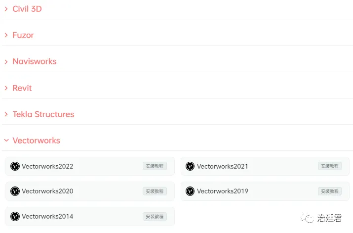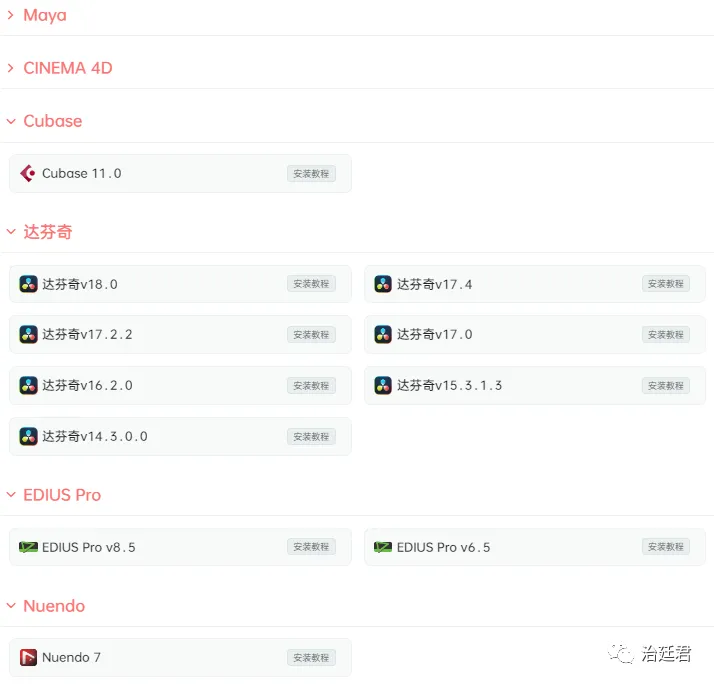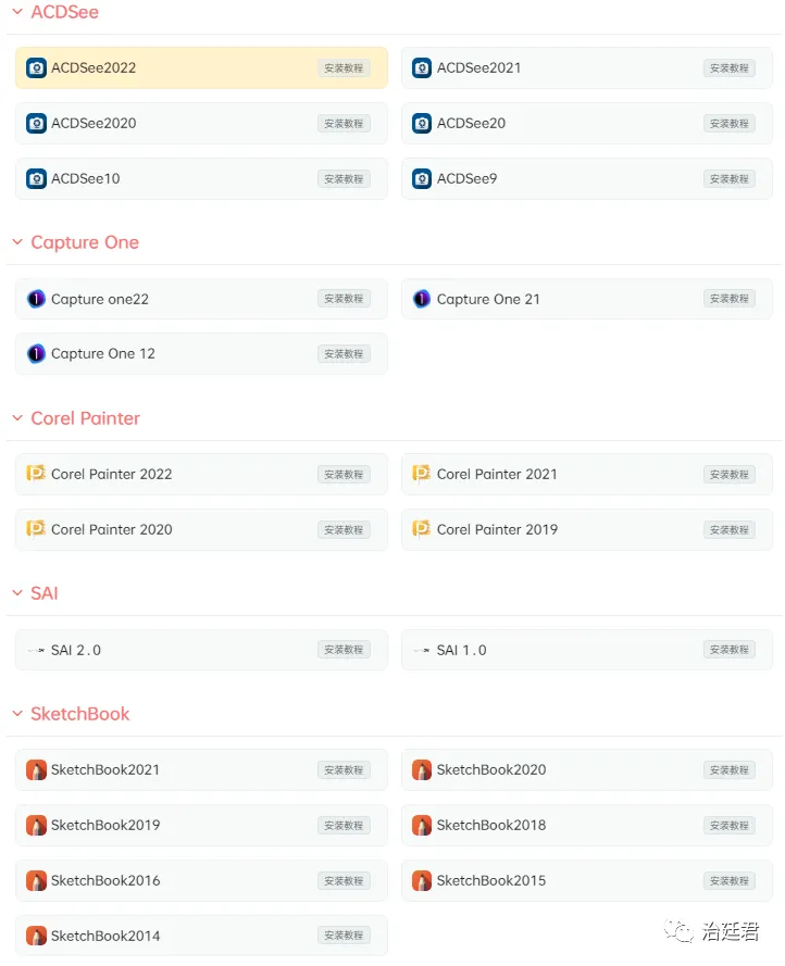 由于各个分类里各个软件版本众多,截图时只能将软件子分类收缩起来,要不然截图不全。