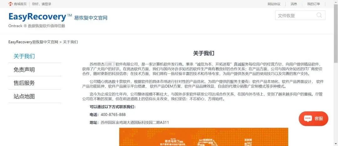 但当我在网上一搜 EasyRecovery,一盆冷水泼了过来,它背后的中国代理,是苏州某软件公司。