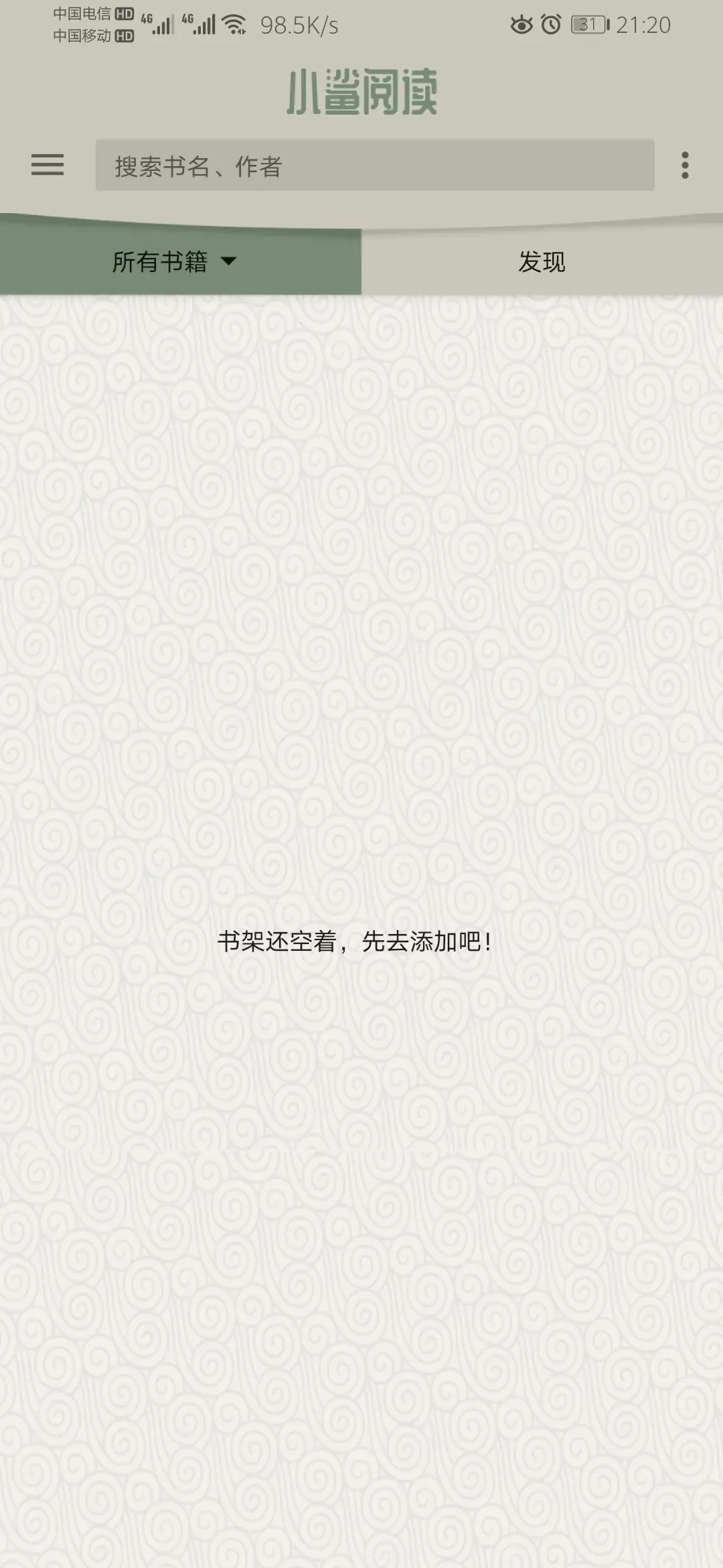 软件主页是非常简洁的,只有两个页面。一个书架、一个搜索源。