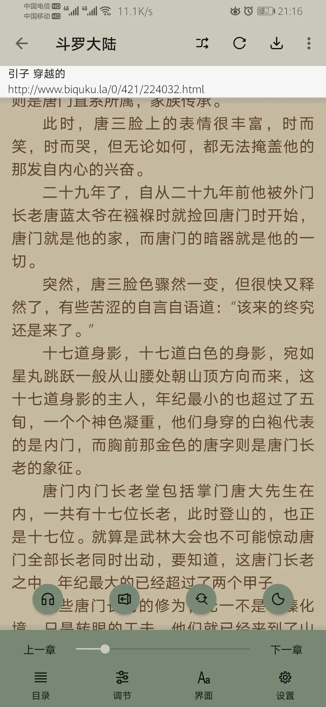 这里我拿斗罗大陆进行搜索了一下,就有下面这么多的书源可以阅读,并且随便点进去一个书源都可以看到直接就能进行阅读的。并且阅读页面可以自行设置喜欢的主题色,例如阅读时的护眼色等,支持在线听书和下载等功能。