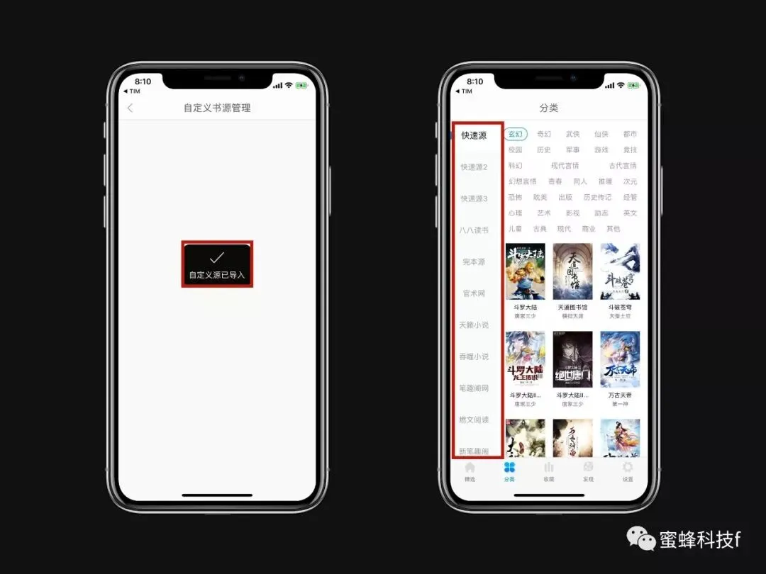 ⑤会提示已导入,浏览【分类】就可以进行切换源