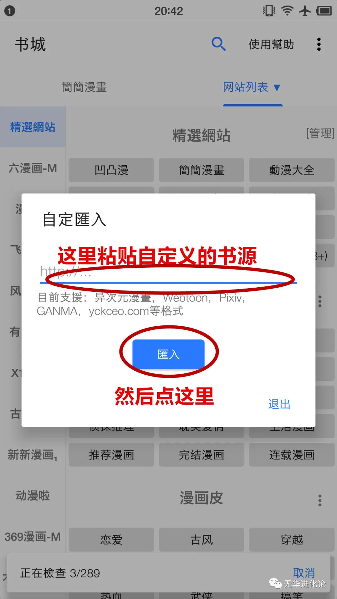 跟阅读pro要自己找书源不一样,倒是漫画是内置书源了的,而且定期更新,app里面照着点几下就搞定了,参考下面图片里的方法1。