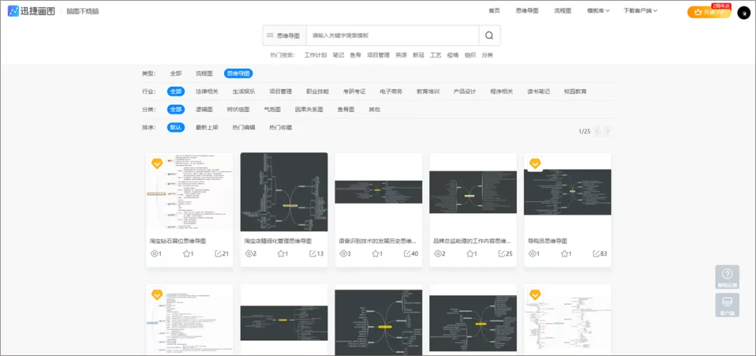 提供十几种模板分类标签和主题风格,满足您在不同场景下的绘图需求。模板内容覆盖产品经理、运营管理、人事财务、研发设计、律师、房产建筑、教育和医疗等行业。