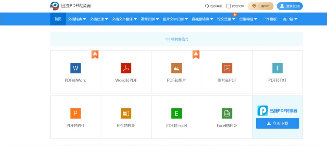 迅捷PDF转换器,能轻松的将PDF转换成“PPT”“Excel”“wold”等