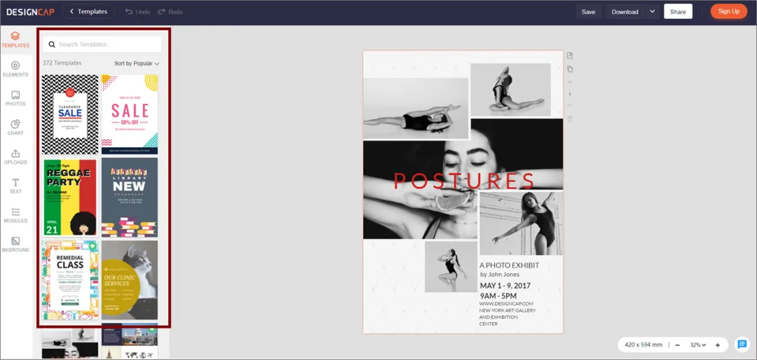 这是是国外的一家提供免费制作海报的在线设计网站。