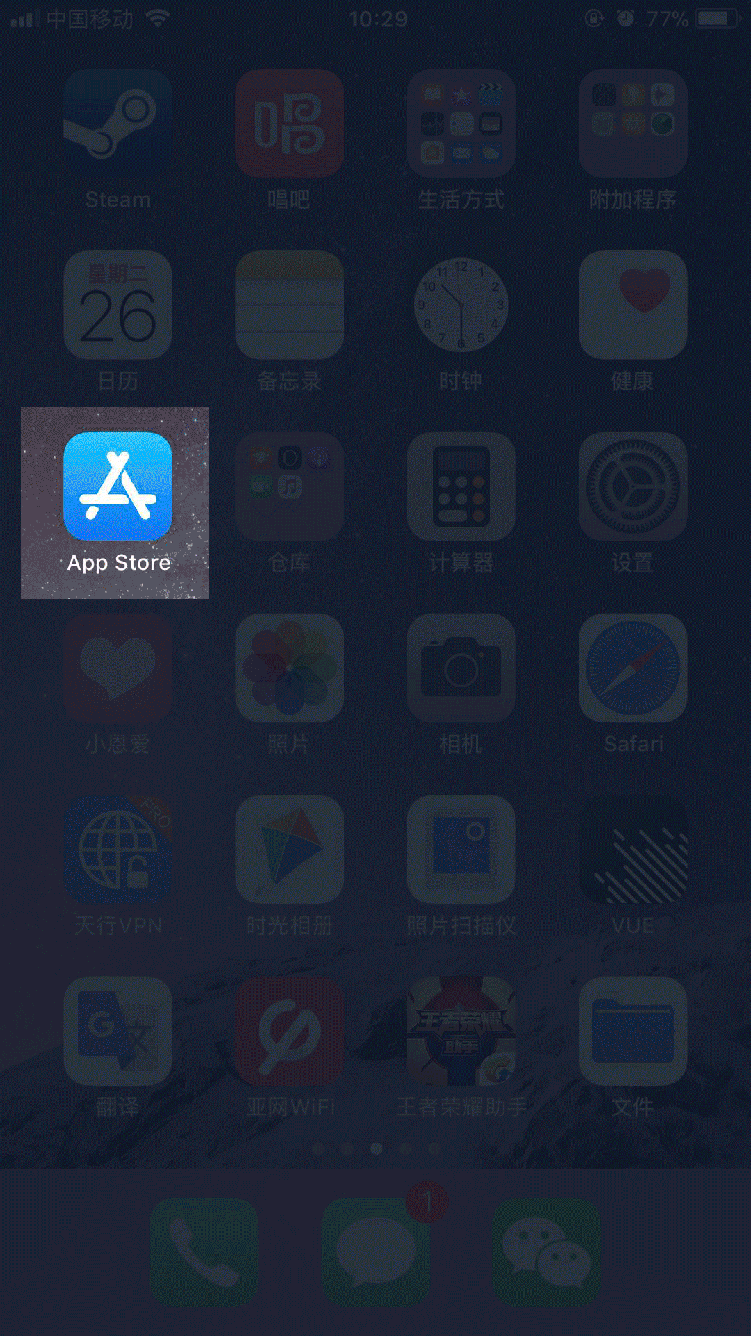 点击苹果手机桌面上的“App Store”