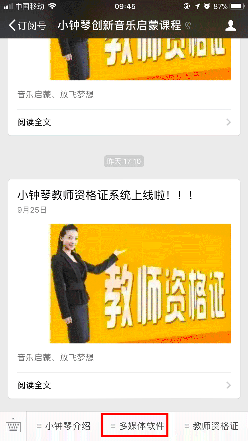 进入“小钟琴创新音乐启蒙课程”公众号
