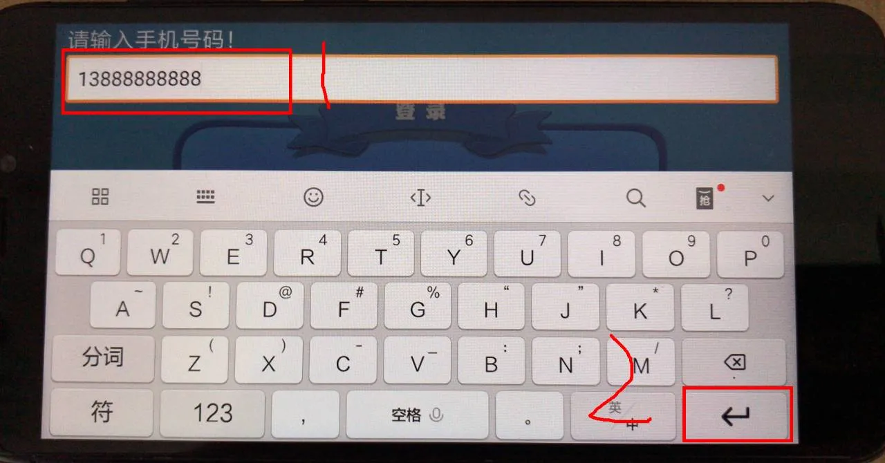 输入完手机号码后,点击小键盘的右下角 回车 按钮。