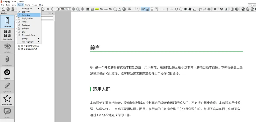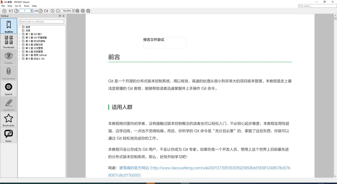 这里选择Git 教程 – v1.0.pdf 文件,然后演示添加文字功能