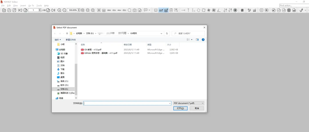 找到PDF4QT Editor图标,打开软件。然后打开一个PDF文档。