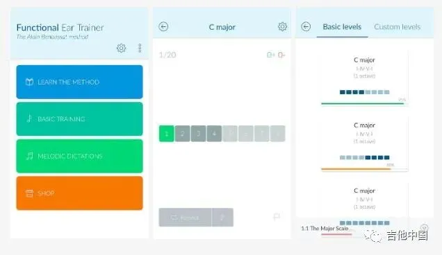 Functional Ear Trainer应用程序将在您听到吉他声后立即帮助您学习如何在吉他上弹奏旋律。它的工作原理是教您在任何给定的音乐键的上下文中区分音调,让您识别其特定的角色和相对位置,以及这种音调听起来的可能性。通过每天使用该应用程序练习10分钟,您可以将可能听到的任何音乐分解为可学习的音符。