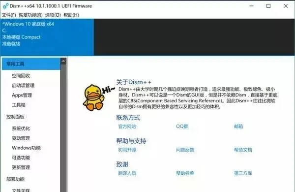 在功能方面,DISM++提供了非常全面的清理功能,而且还有黑科技般的备份和恢复!DISM++支持热备份,就算是系统在运行着,DISM++也是能够备份的!此外,DISM++还可以对系统的外观、功能的方方面面进行调整,利用一些实用工具还能够实现程序强行提权运行、生成编辑系统镜像、修改Host等功能。如果你需要良心的优化软件,这几乎就是最好的选择了。