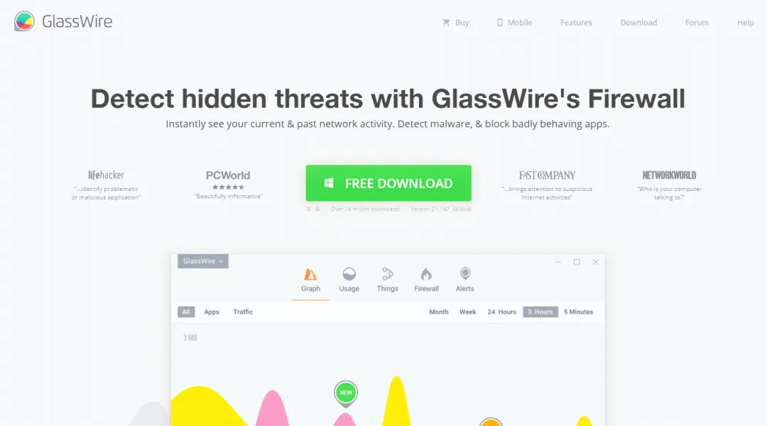GlassWire免费防火墙软件既是防火墙,又是一款网络监控软件,它免费、易于使用,适用于Windows 7/8/10。这款软件不仅非常适合小企业网络,还适合家庭使用。因此,可以将该防火墙配置成不同的使用模式。