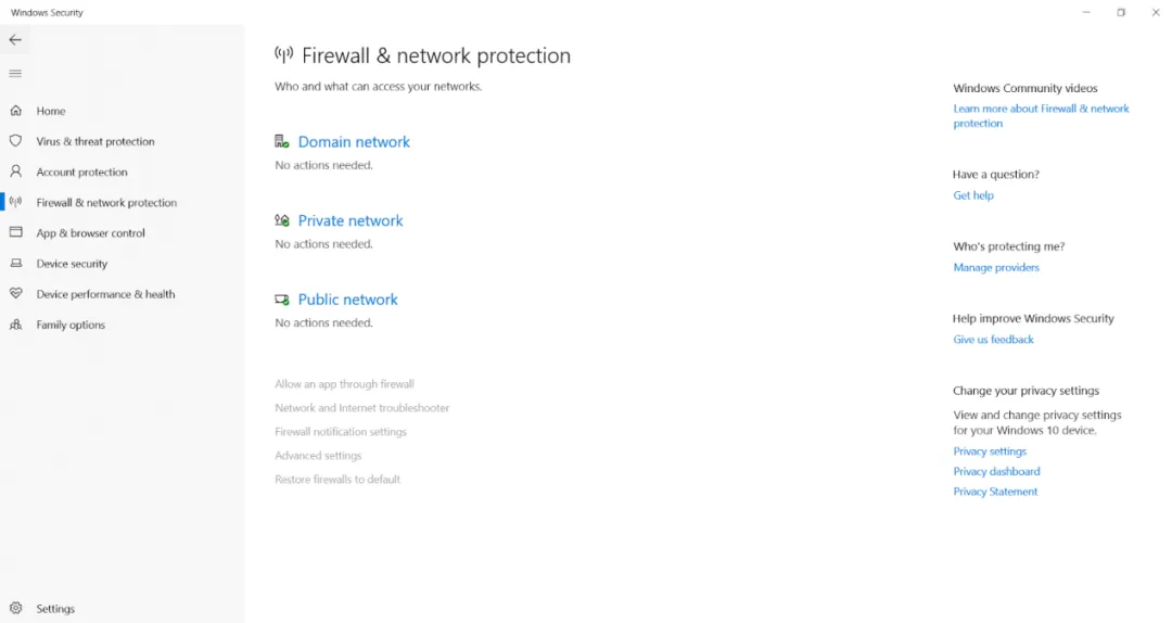https://support.microsoft.com/en-us/windows/turn-microsoft-defender-firewall-on-or-off-ec0844f7-aebd-0583-67fe-601ecf5d774f