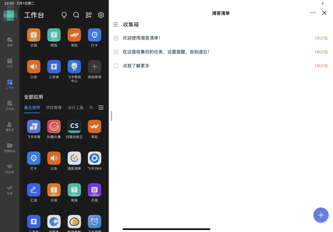 这三个我都用,但是用得最多是飞书。主要还是飞书不仅提供了文档功能,还整合了滴答清单、项目管理之类的,可以更便捷地给自己规划任务,是一个做计划的好工具。