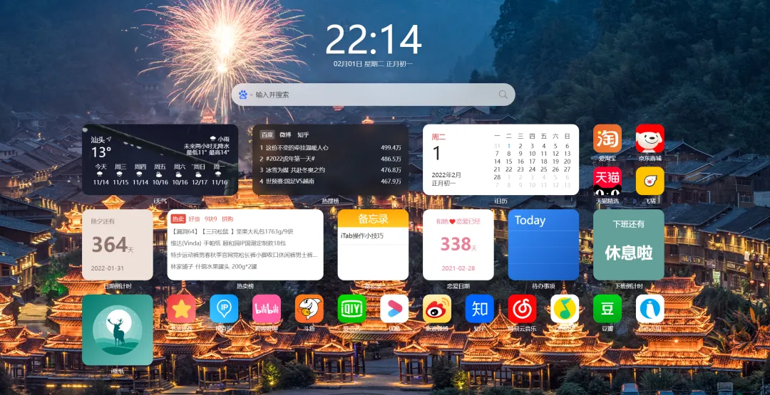 一款有大量组件的起始页插件,界面非常漂亮,可以自定义网址、图标和分类。还提供了很多很多的使用组件,比如倒计时、天气等。