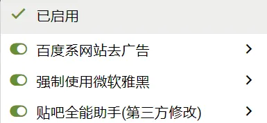 包含了各种各样的脚本,比如百度云直接下载,去广告,在线视频链接解析,嗅探下载等。像这个贴吧助手: