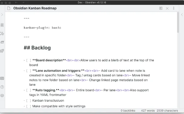 有些地方会用到 YAML 或特殊注释来标记这是一个 Kanban 文件。