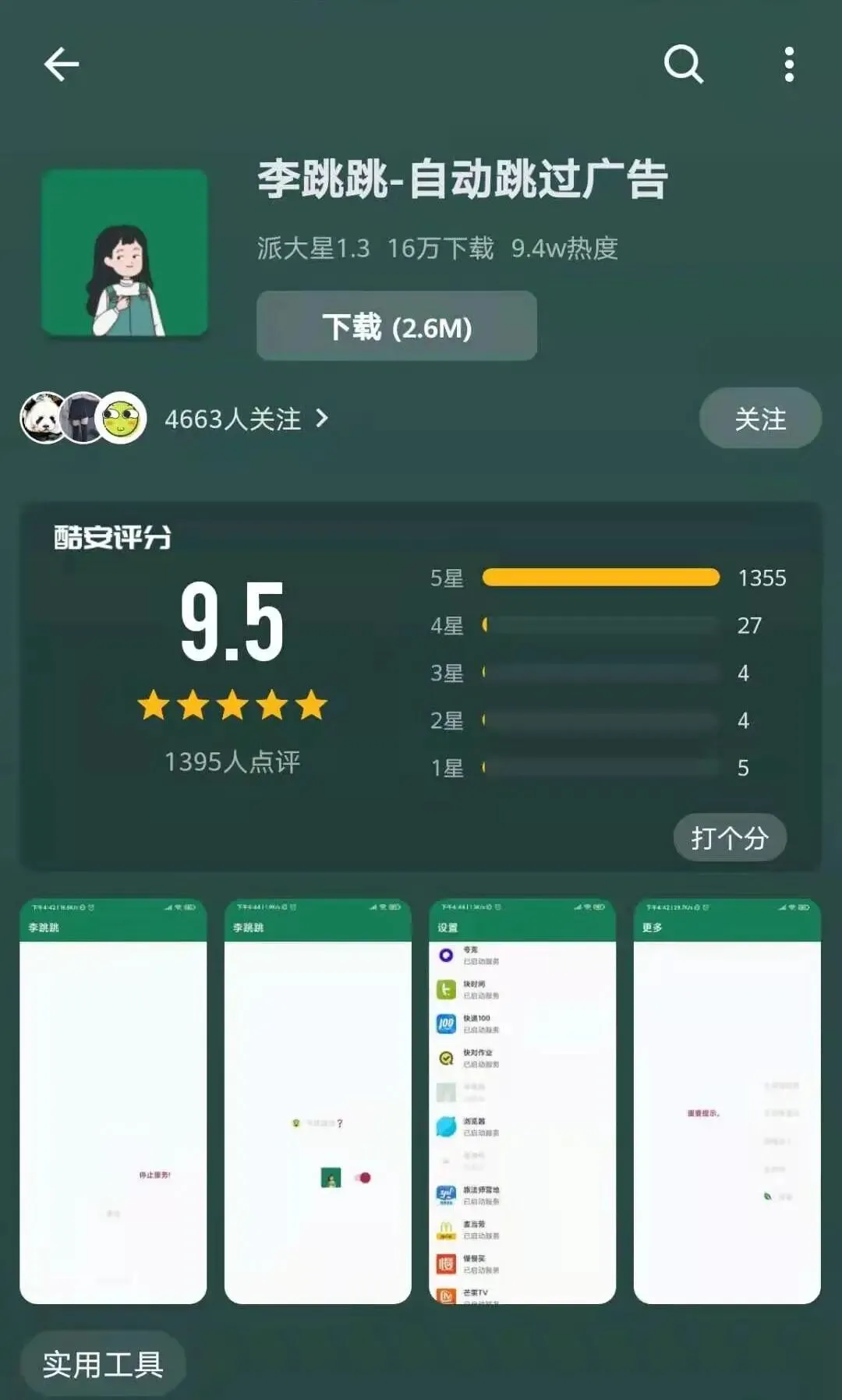 自动跳过安卓软件开屏广告神器,李跳跳1.3