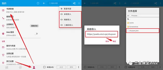 三金给大家找来了软件作者汇总的全部书源,公众号回复:书源,即可获取。