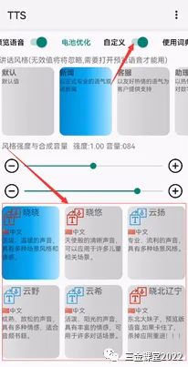 第三步,将自定义勾选上,然后选择下方各种类型的语音:
