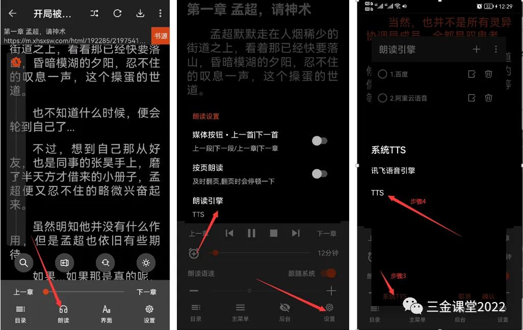 第四步,回到阅读Pro APP,点击阅读界面下方的朗读按钮,如果朗读引擎还未切换到微软TTS,则再次点击设置,将朗读引擎切换到微软TTS即可: