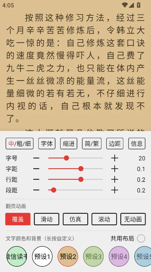 具体的阅读界面,软件自带的已经很舒服了,如果有更喜欢的风格完全可以自己定义,像是字号字体都能自己来定,很是自由,觉得有兴趣的同学可以自己去下载一个看看。