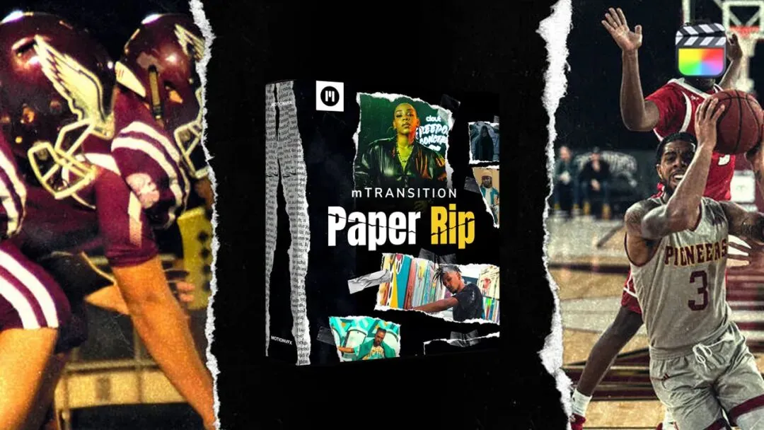 『撕纸转场』FCPX插件:52个创意杂志撕纸折痕剪切拼贴风格化转场过渡FCPX预设 mTransition Paper Rip