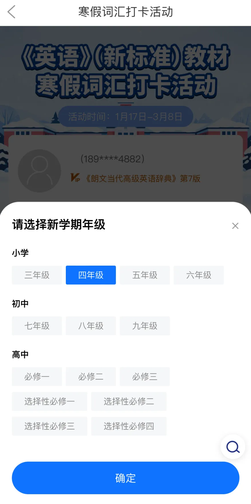 《英语》(新标准)教材+朗7词典APP寒假词汇打卡活动火热进行中