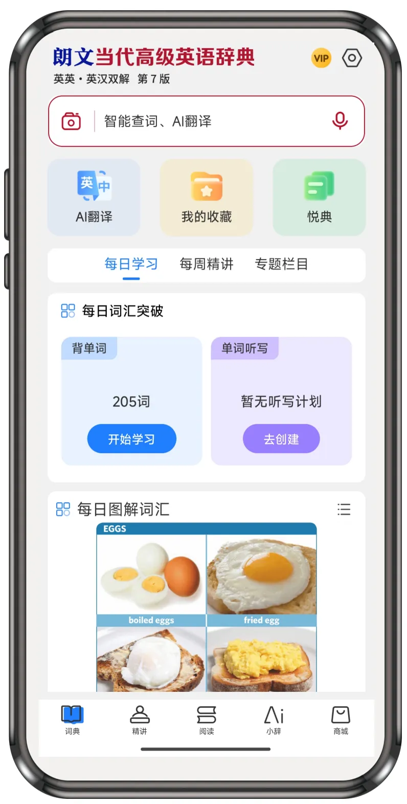 此次打卡活动依托朗文当代高级英语辞典(第7版)APP。说起这个APP,绝对是一个“天花板”级别的智慧查学工具,集权威词典查询、发音评测、精品课程、名著阅读、智能翻译、同步听写、AI背词等各种强大功能于一身(点击此处进一步了解朗7APP)。