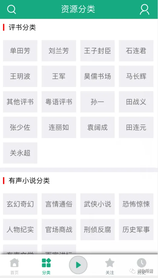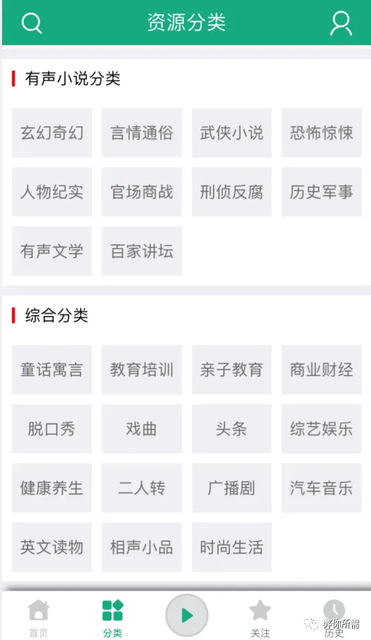 如果以上有声资源无法满足大家,点击app左下角的分类,几十种类型的有声读物分门别类陈列开来,包括有