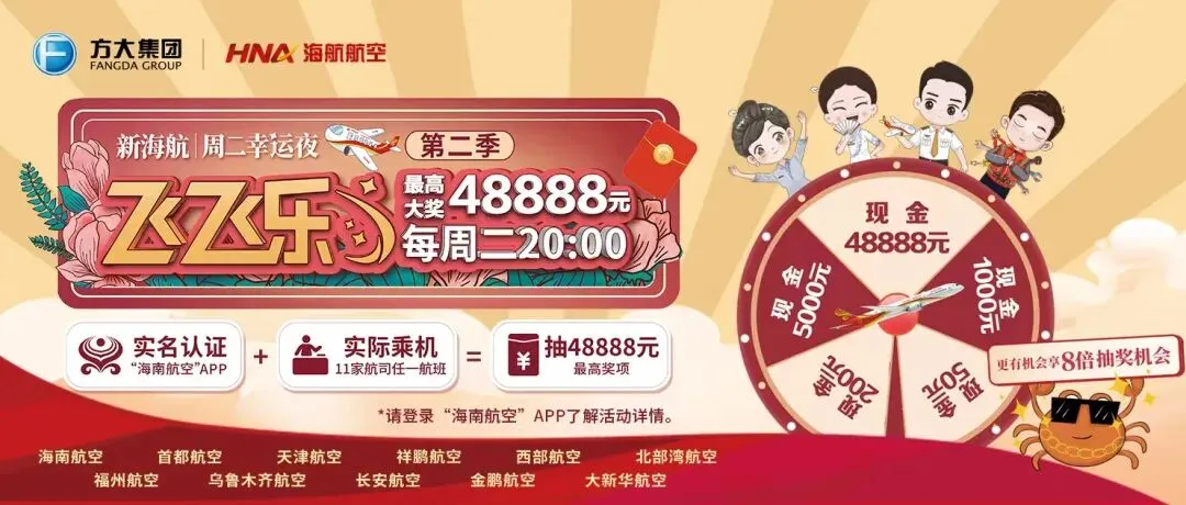 新海航“飞飞乐”周二幸运夜抽奖活动