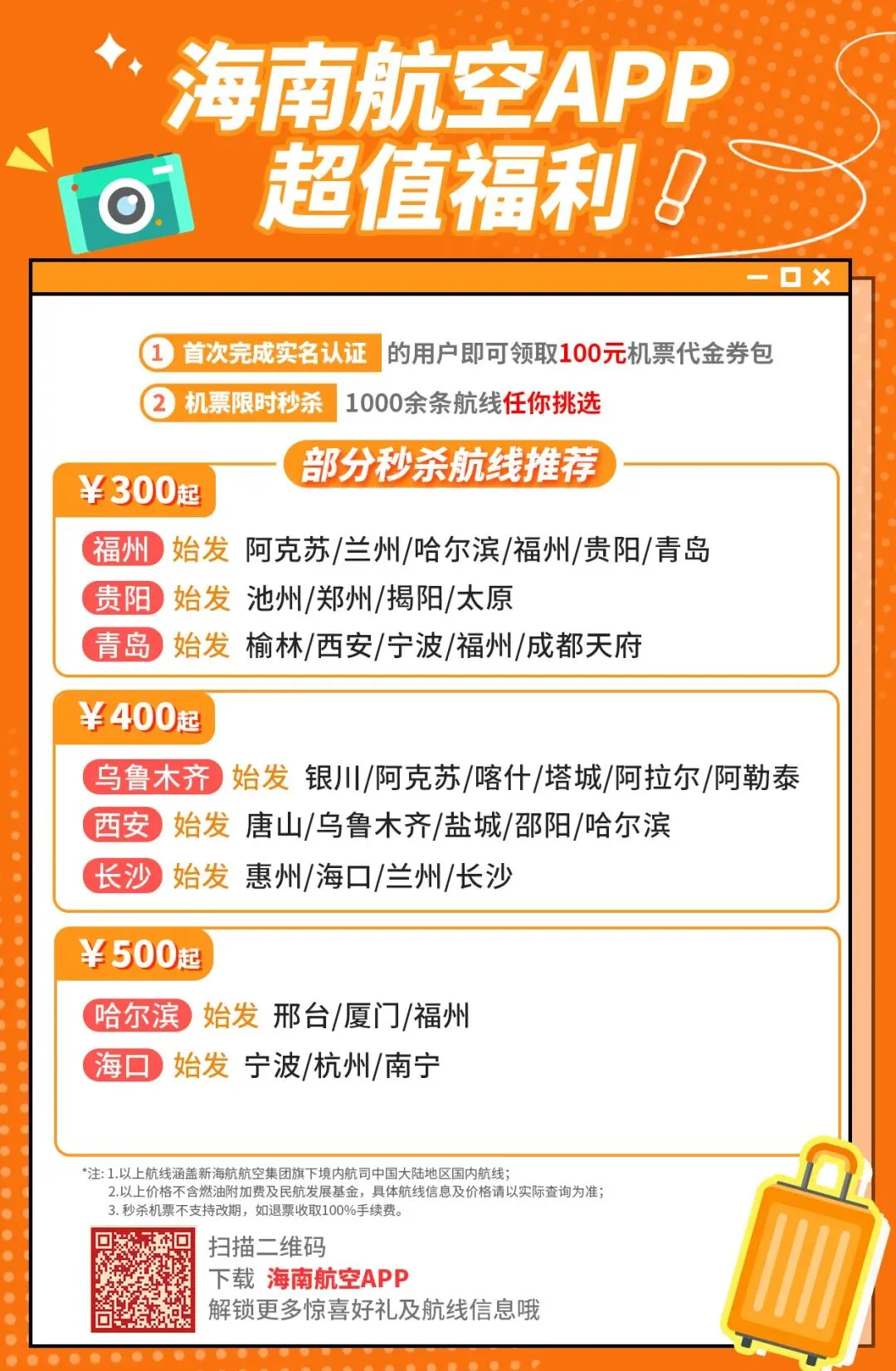 航司优惠 || 春运抢票2折起+APP秒杀,乘海航更有机会得¥48888!