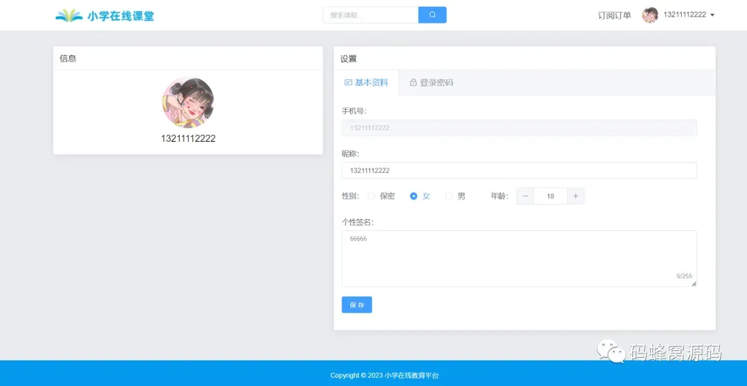 该在线教育学习平台基于B/S架构,后端采用SpringBoot架构,前端采用Vue+ElementUI技术,并结合MySQL数据库。该系统分为系统管理员、教师、学生用户三种角色: