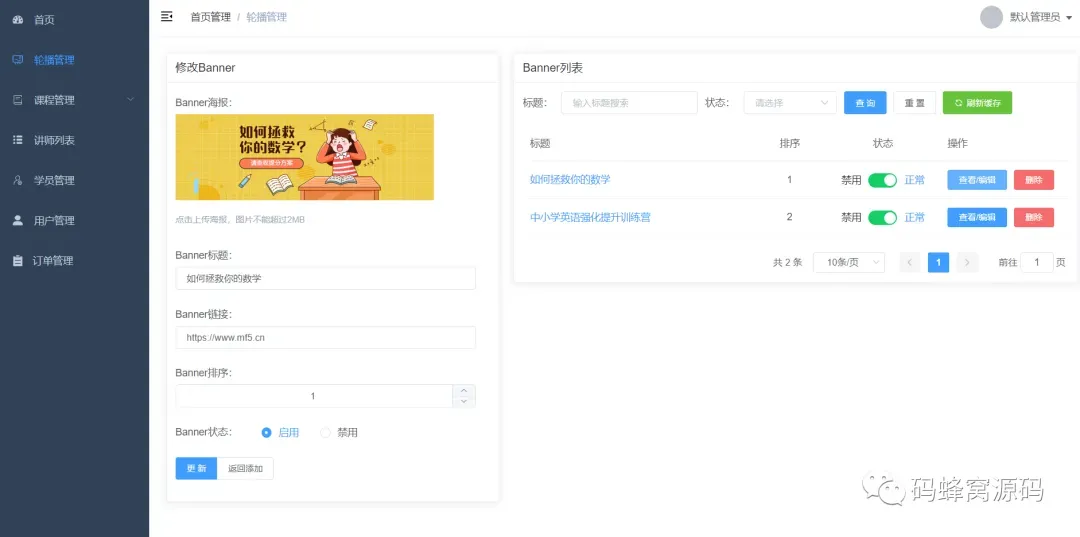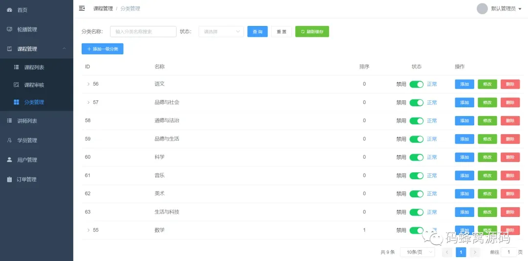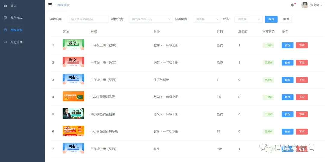 3)课程管理和上下架