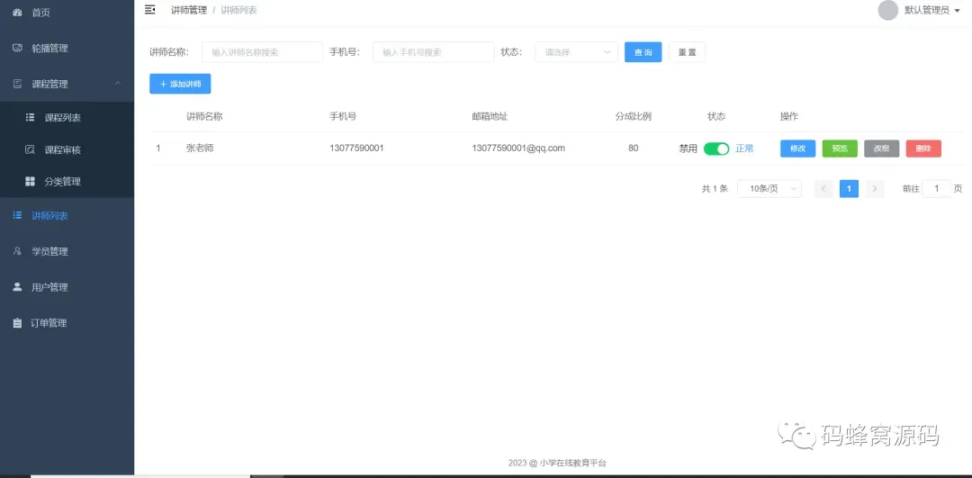 5)讲师信息管理