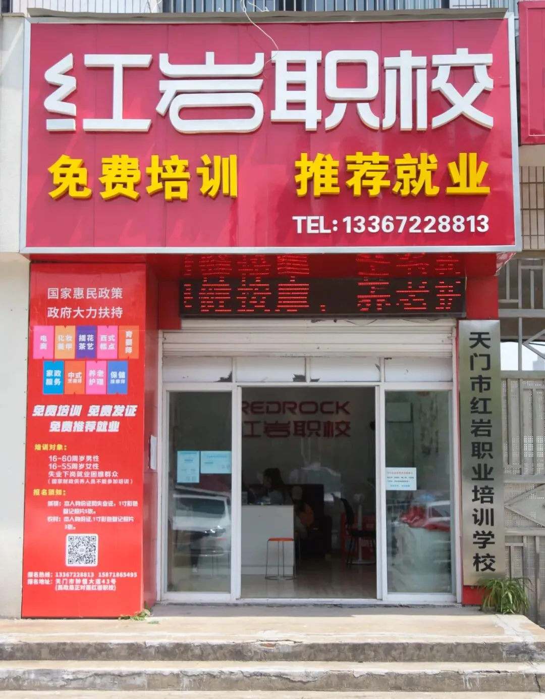 天门市红岩职业培训学校于2016年7月经天门市人社局批准成立,位于钟惺大道43号,是天门市职业技能定点培训机构和湖北省职业技能等级认定机构,主要为下岗失业及农村剩余劳动力提供免费培训,为更多的城镇失业人员提供一技之长,找到就业岗位或创业机会,提高其家庭收入。